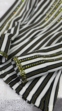 GLAM Olive Green, White and Black Striped Stretch Knit Day Shirt