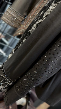 This gorgeous SIMPLY+ Black Day Shirt is a sophisticated piece needed in anyones wardrobe! A ton of bang for your buck! Featuring upgraded whipstitch cuff and collar along with with scattered crystals on the shoulders and sleeves for full sleeve sparkle and blacked out shoulder fringe. Super versatile and easy to pair with any horse. A classic look for anyone!