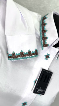 Step into the spotlight with confidence and grace, adorned in designs that echo the timeless allure of the Southwest. Our collection blends tradition with modern luxury, making each shirt a unique statement of style and heritage.
